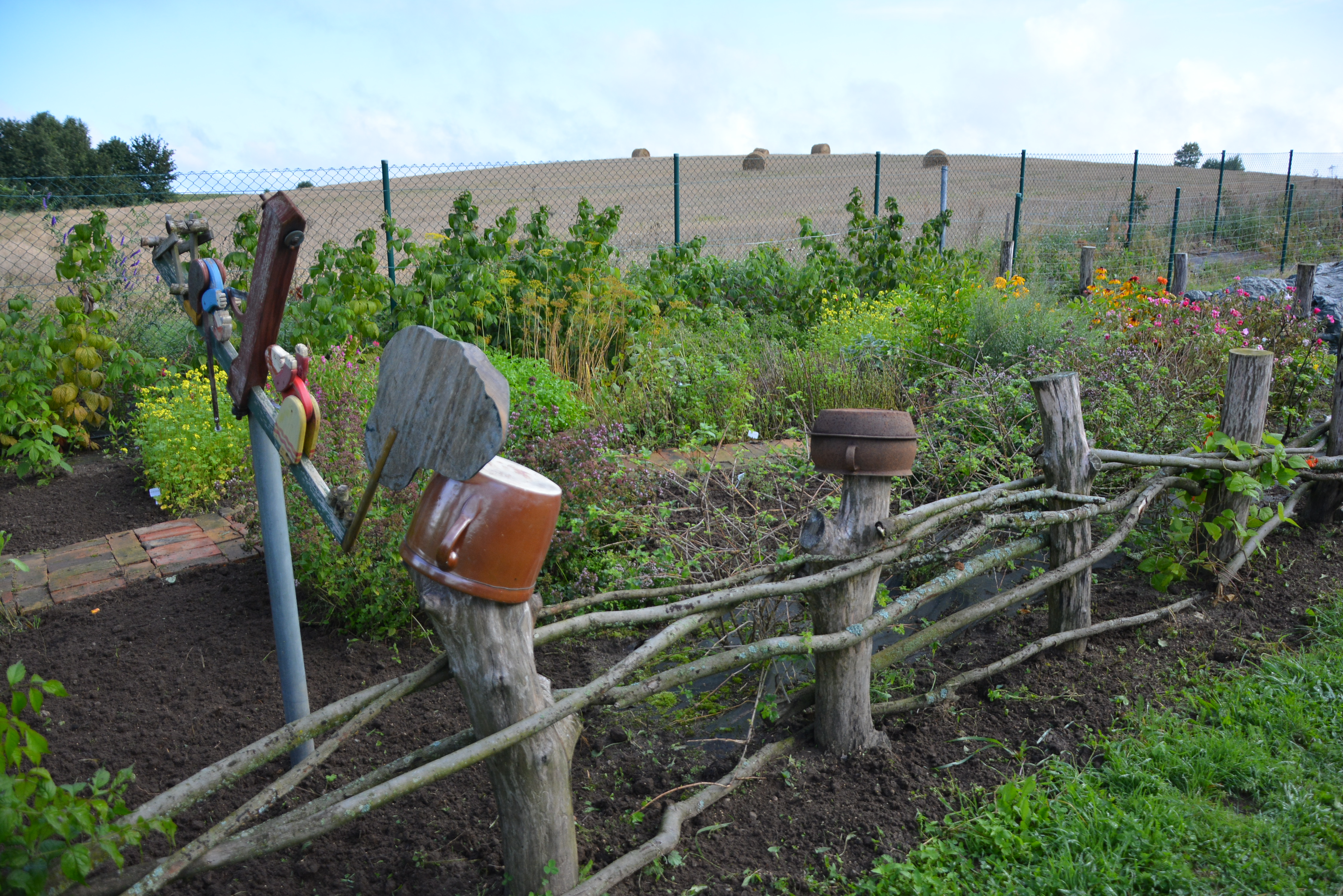 • Cały teren obsadzony jest sadem ekologicznym (certyfikacja UE): jabłoniowym, czereśniowym, gruszowym i śliwowym, ale na terenie znajduje się także ogród warzywny oraz krzewy owocowe, m.in. aronia i agrest.