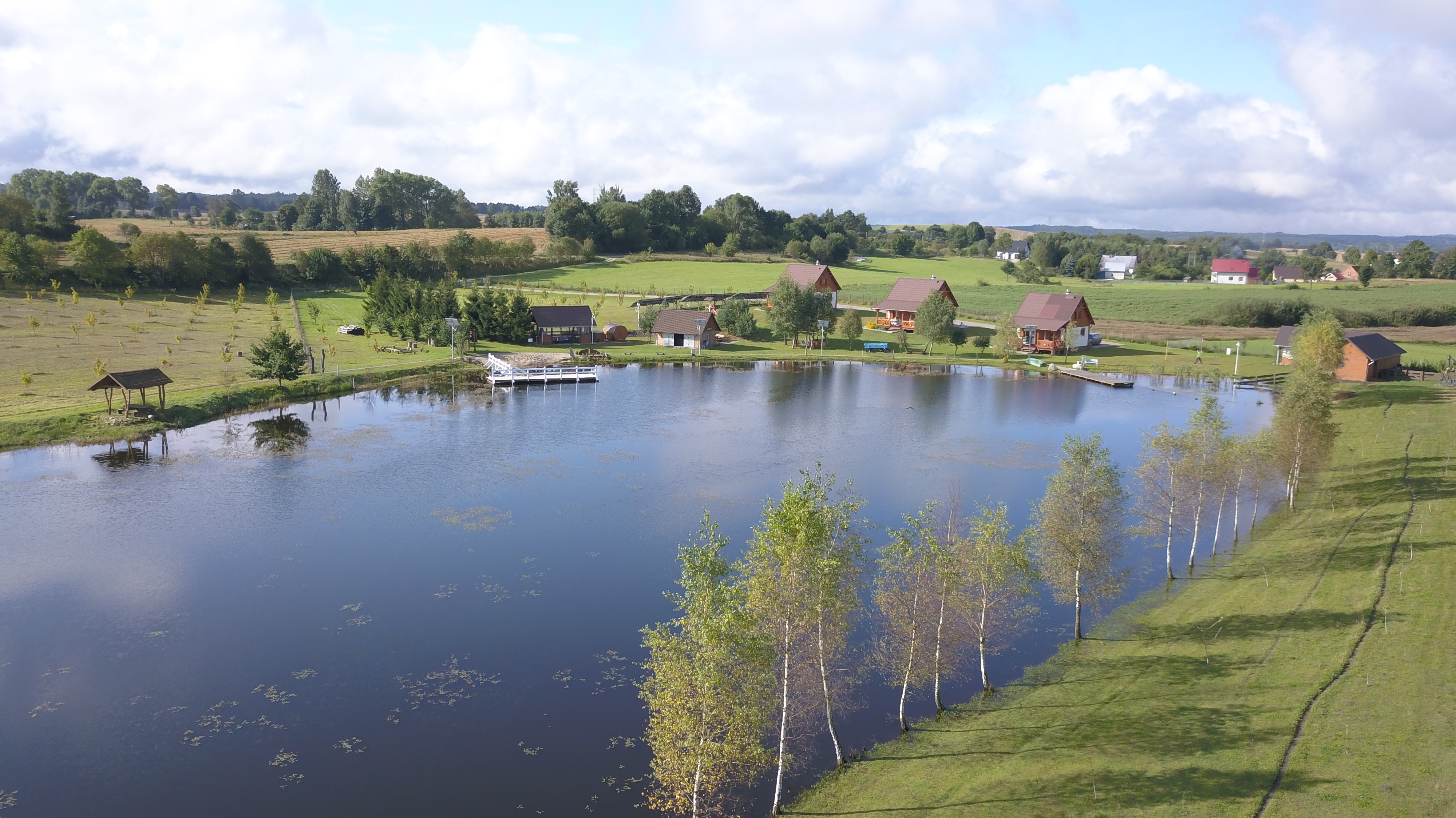 Jest to prywatny staw o wielkości ok. 2 hektarów i głębokości do 3 metrów. Jest naturalnym zagłębieniem morenowym (nie został sztucznie wykopany). Staw w całości leży na terenie osady. Zbiornik wodny jest ogrodzony, co pozwala na ochronę przed zwierzętami rybożernymi. Na środku stawu znajduje się wyspa. Dostęp do lini brzegowej jest bardzo wygodny, acz miejscami jest dosyć stromo.